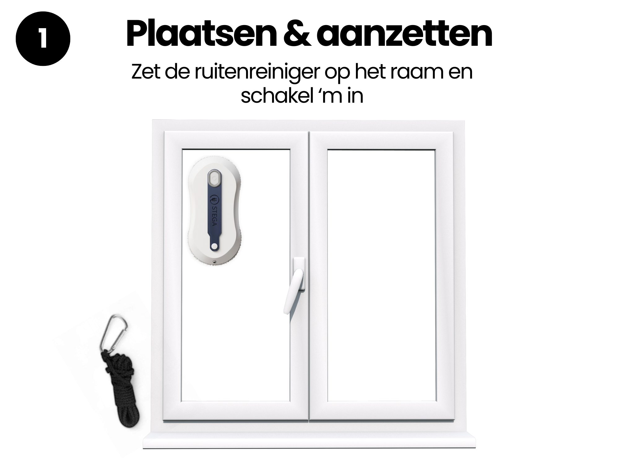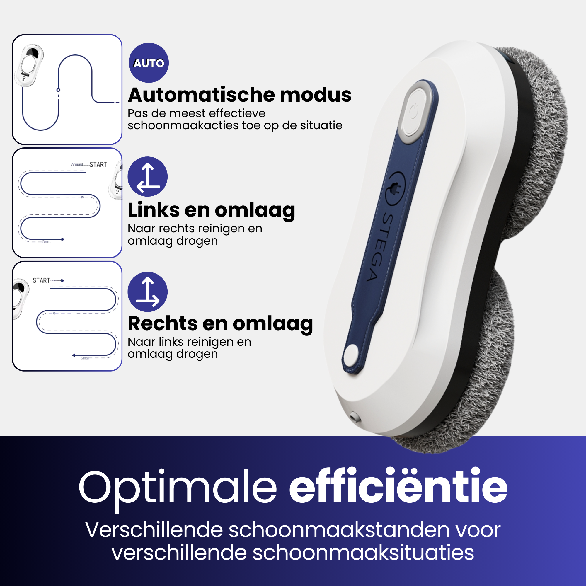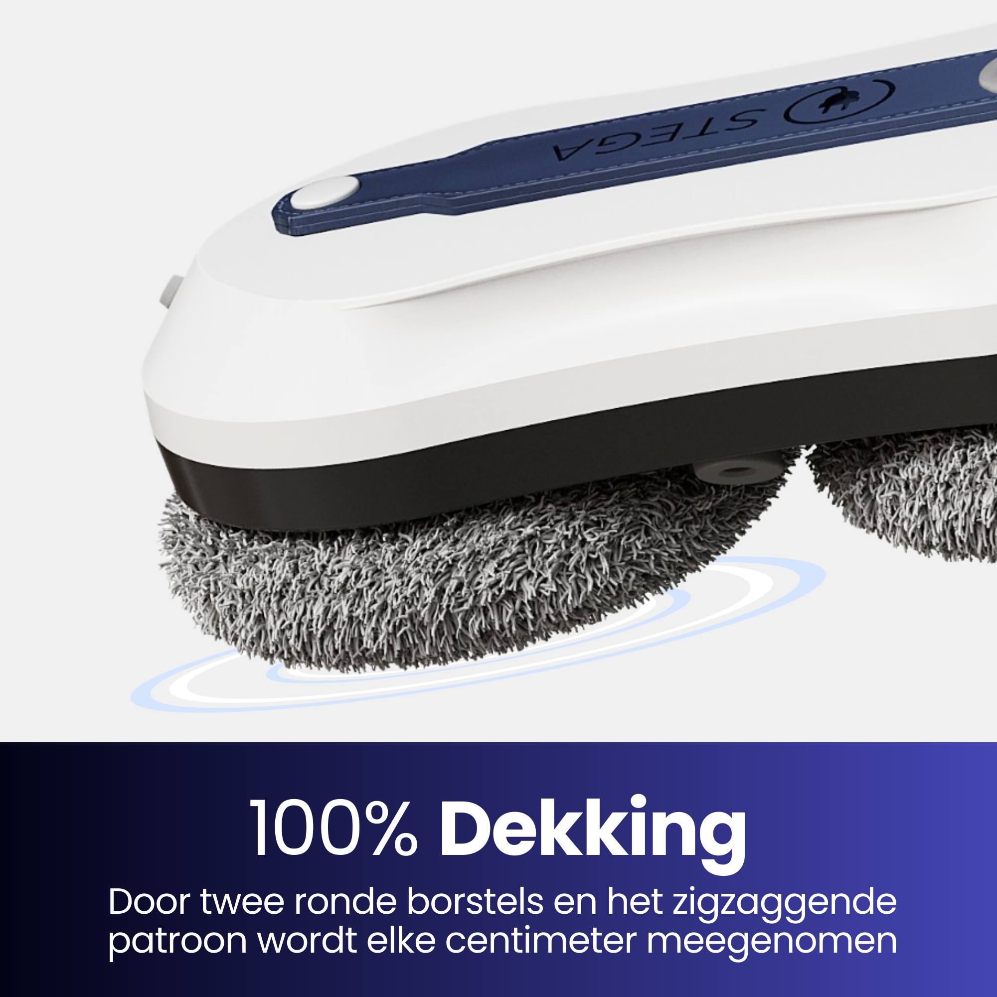 The STEGA Automatic Window Cleaner SCR-02 guarantees 100% coverage thanks to the two rotating brushes and a smart zigzagging pattern. This ensures that every surface is completely cleaned without spots or streaks. Maximum efficiency for crystal clear windows!