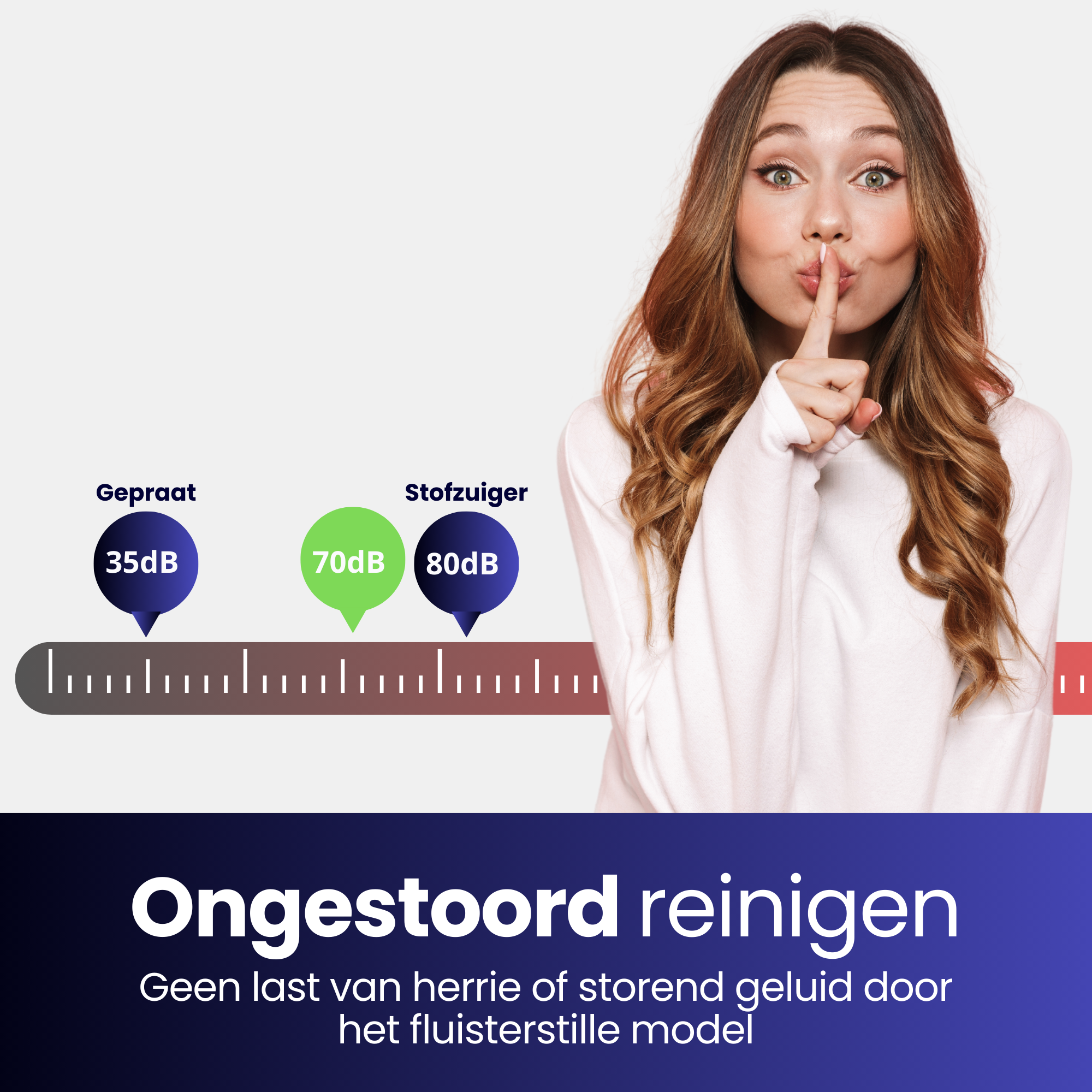 With an impressive suction power of 2800Pa, the robot stays firmly on wet and dry surfaces. Even in the event of a power failure, the safety mode gives you an additional 20 minutes of battery life. It is whisper-quiet at only 67 dB, so you can always use it without any nuisance.