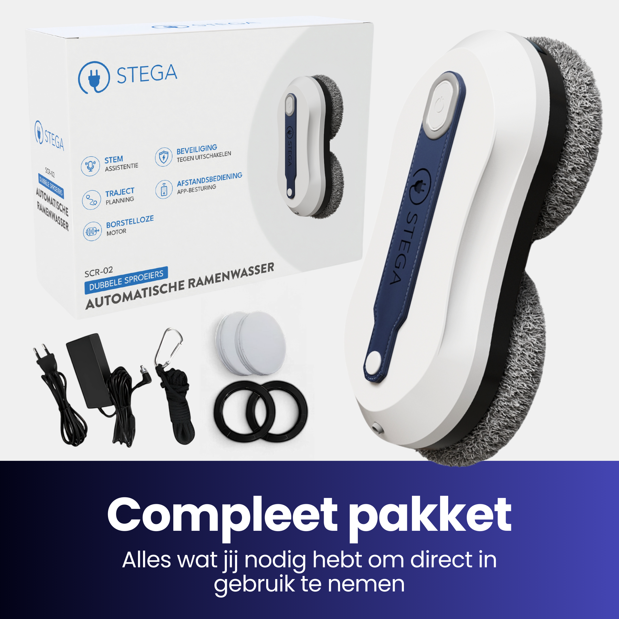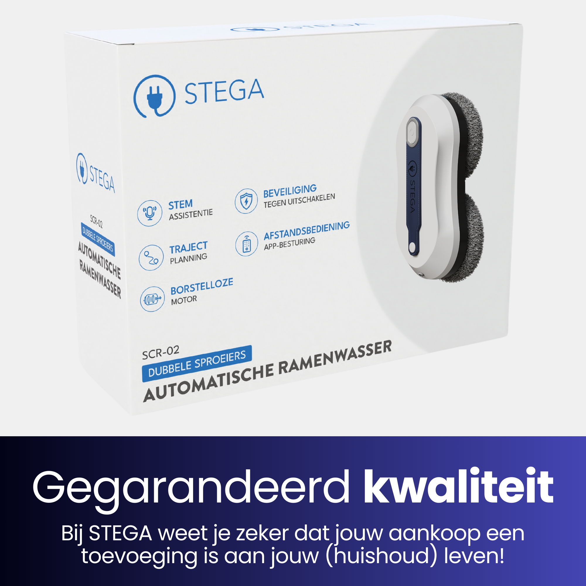 The STEGA Automatic Window Cleaner SCR-02 offers the latest technology for effortless cleaning. With voice assistance, smart route planning and app control, you get maximum control and convenience. Thanks to the double nozzles and brushless motor, this model delivers efficient, streak-free cleaning. Reliable, smart and guaranteed quality!