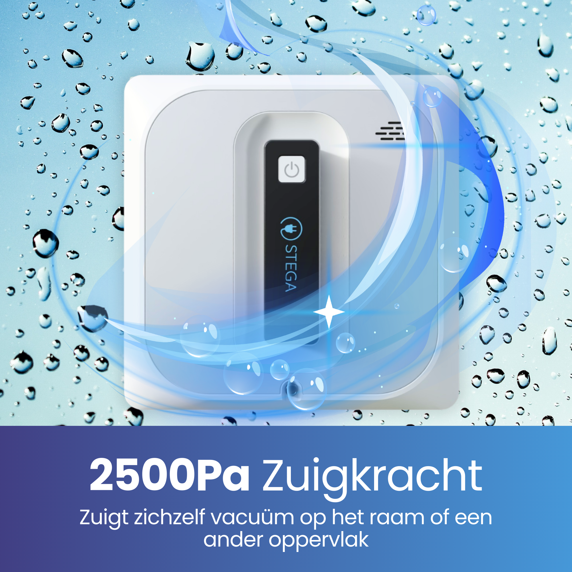 The STEGA Automatic Window Cleaner SCR2-01 has 2500Pa suction power, which allows it to hold firmly on glass and other smooth surfaces. This ensures safe, stable and efficient cleaning, even at great heights. Reliable grip for effortlessly clean windows, every time!